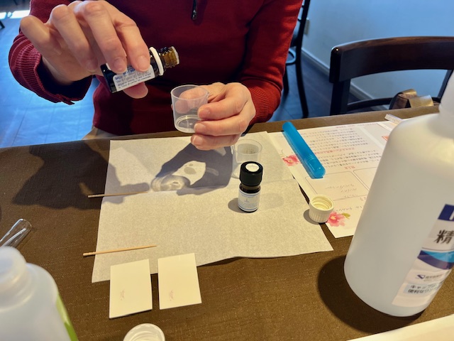 精油を選ぶ時間は、何種類もの香りを嗅ぎ分けます。