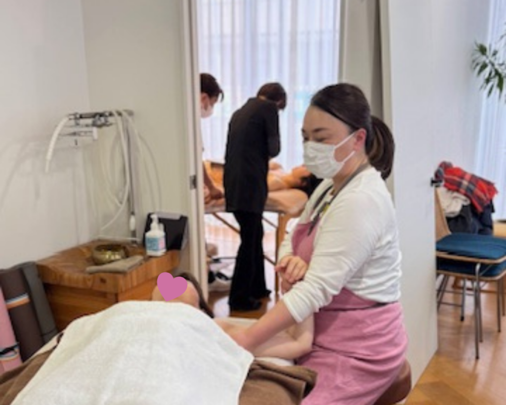 最初の半年は「ベーシック」と言われる授業が続き、頭の先から足の先までの、ひととおりのトリートメントを学びました。